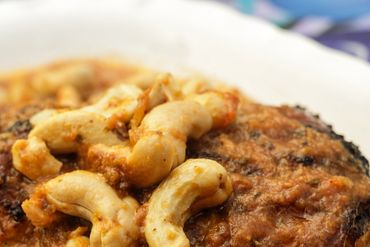 Marinated chicken baked to perfection and topped with roasted cashews.